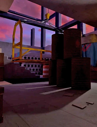 Карта предлагает динамичные бои в индустриальных руинах старой фабрики: высокая плотность укрытий, сложная вертикальность и ограниченная видимость заставляют играть агрессивно и осмотрительно. Заброшенные производственные цеха и ржавые переходы превращают каждую перестрелку в напряжённую схватку за выживание.